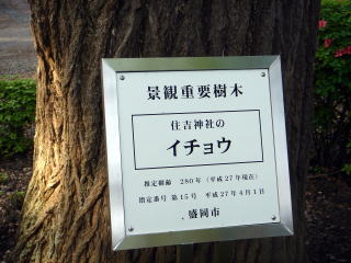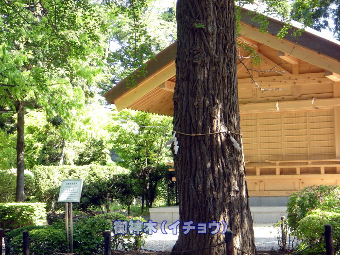 御神木のイチョウですがおよそ西暦1730年頃から育っていると思われます。当社は西暦1795年にこの地に遷座致しましたので、当時には既に大木であったと考えられます。故に御神木と致しまして現在を迎えております。