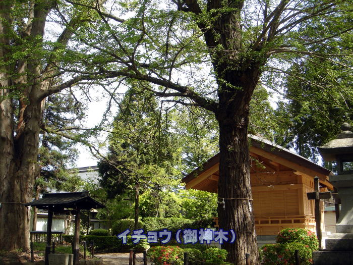 参道沿いの拝殿前左側にあり、毎年秋になりますと銀杏の実が沢山落ちます。知っている方は毎年拾いに来ますので欲しい方はご自由にどうぞ。